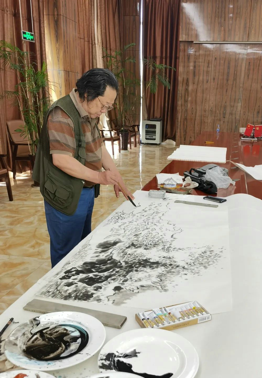 2022年5月21日,由日照日報社、日照新聞書畫院共同舉辦的“海曲?繪”活動,邀請秦緒堂、陶安金兩位日照書畫名家來潔晶集團,以海洋發展為底色,創作了一批優秀書畫作品。