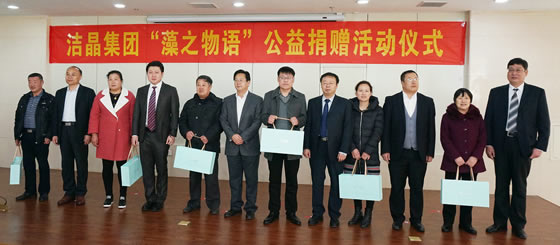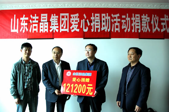 多年來,山東潔晶集團先后為日照一中等學校、孝德基金、敬老院等進行捐助;贊助大型職場招聘電視節目《贏在日照》、中國日照海洋國際音樂節;在部分院校設立潔晶勵志獎學金,為特困職工捐款捐物,向日照市總工會、中加國際共同推薦的糖尿病友免費贈送海帶多糖塊“藻之物語”產品,并承擔了所有體檢費用,這些善行義舉受到了主流媒體和廣大市民的廣泛關注和認可。